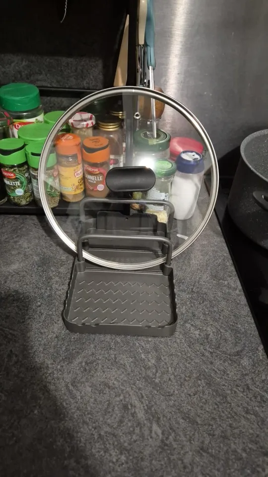 Keeps lids, spoons and chopping boards properly organised