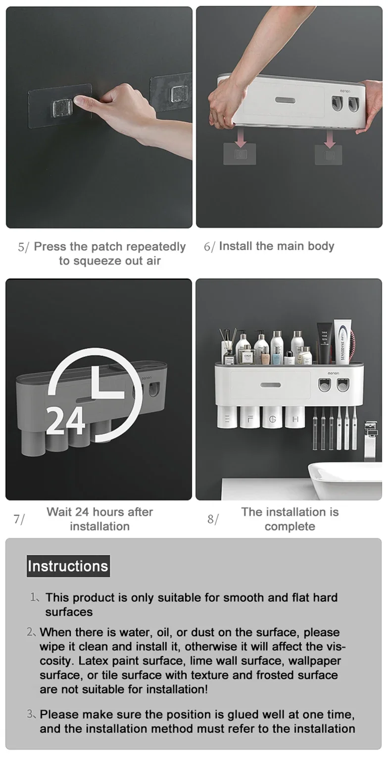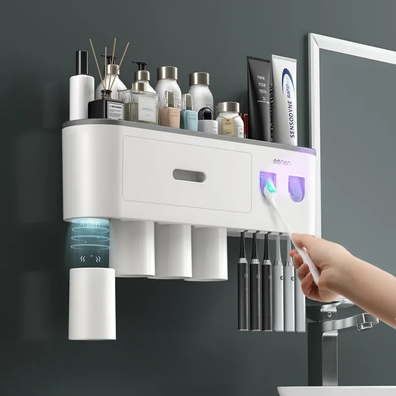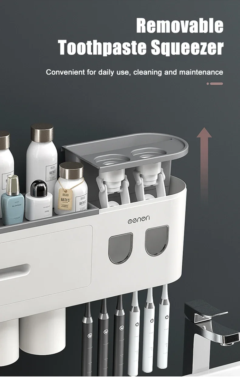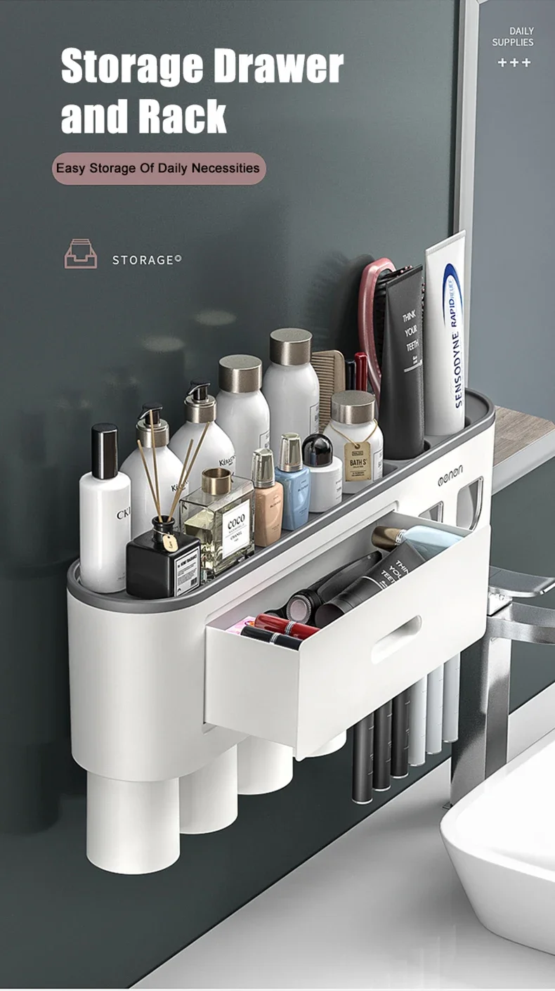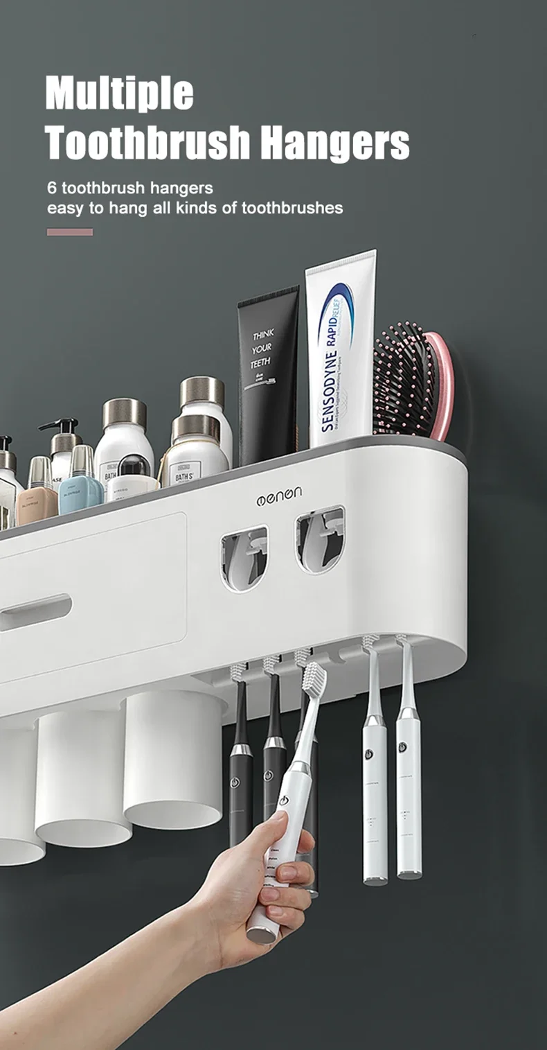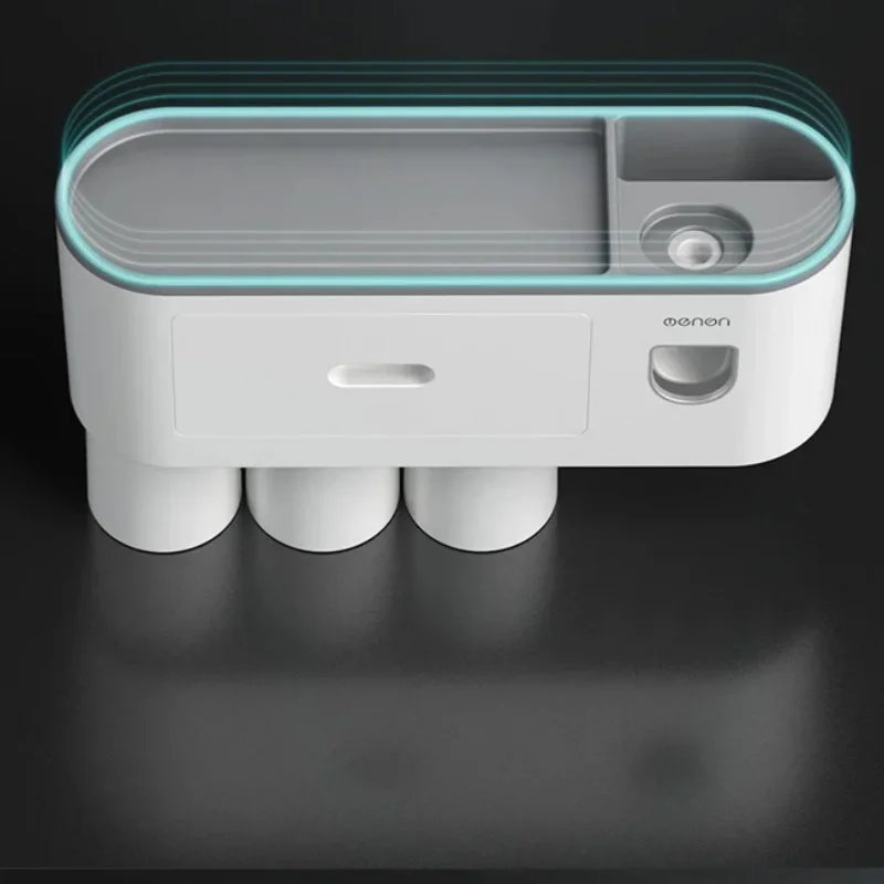 Toothbrush Storage Rack Magnetic Adsorption Inverted Toothbrush Rack Wall-Mounted Automatic Squeeze Toothpaste Storage Rack
